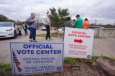 to cast ballots at an official vote center in Dallas, Tuesday, March