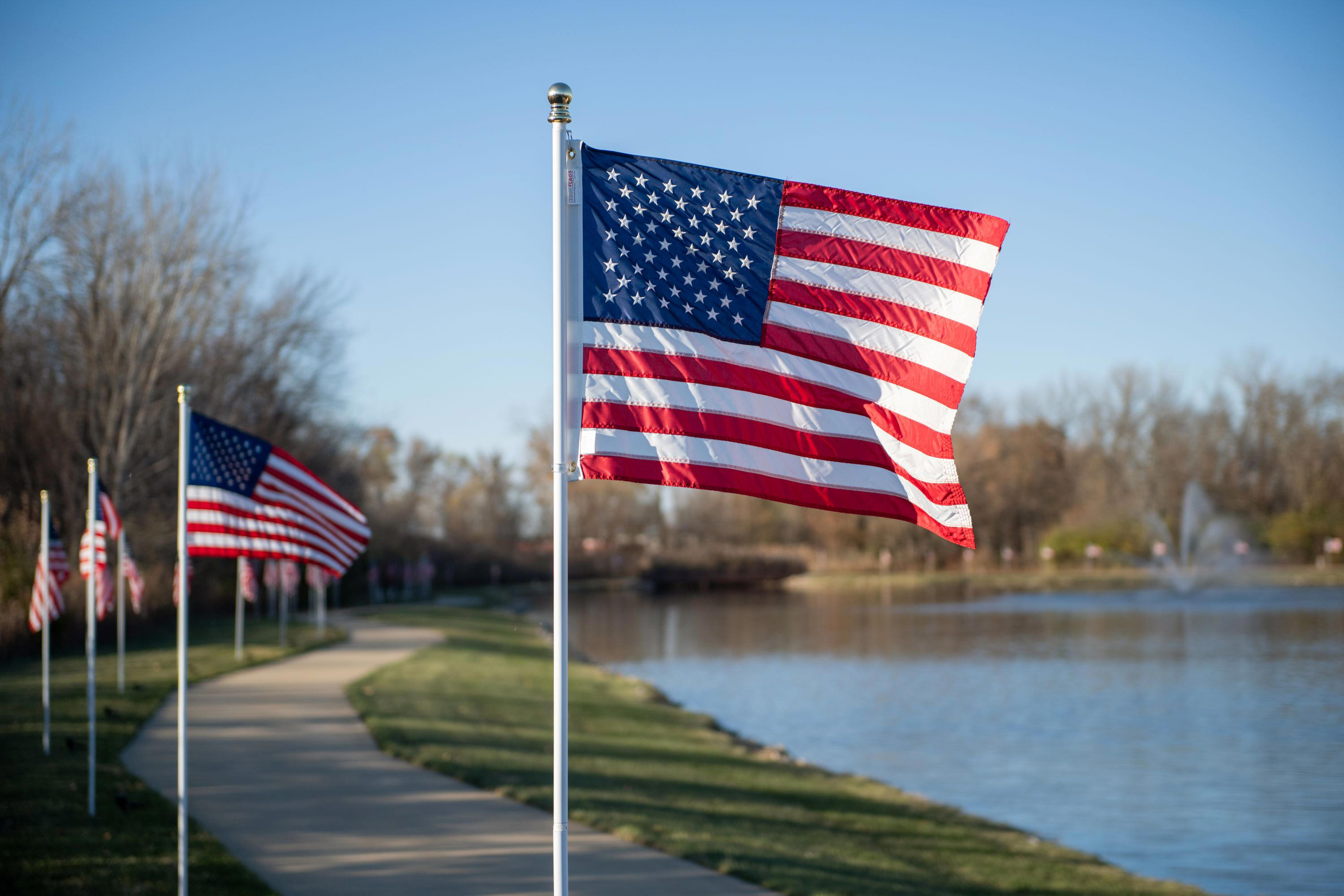 American flags at Lincoln Memorial Hospital Wellness Trail. Kara