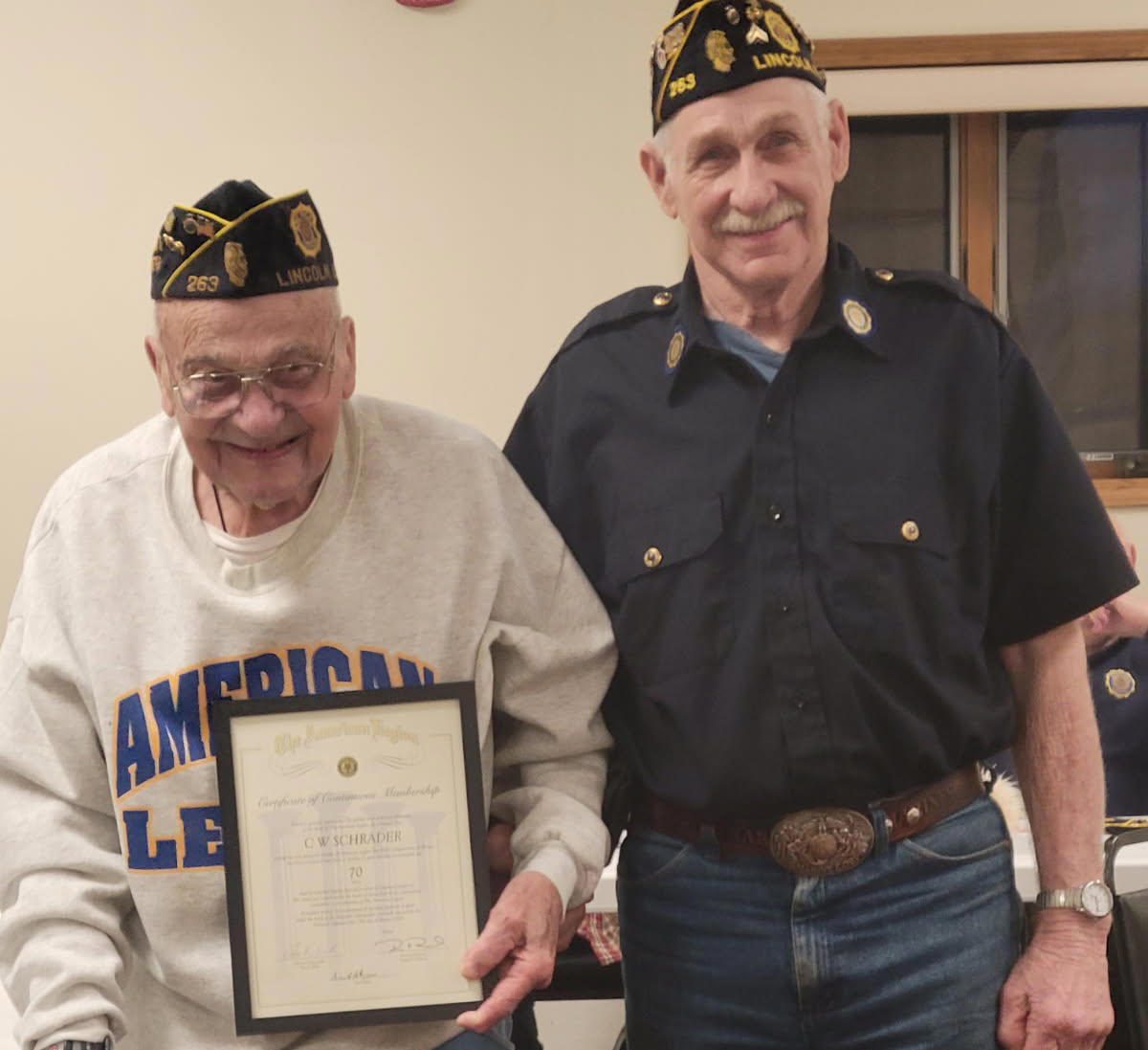 At a recent membership meeting of the Lincoln American Legion Post 263, C. Wayne Schrader was recognized for his 70 years of continued commitment to the American Legion.