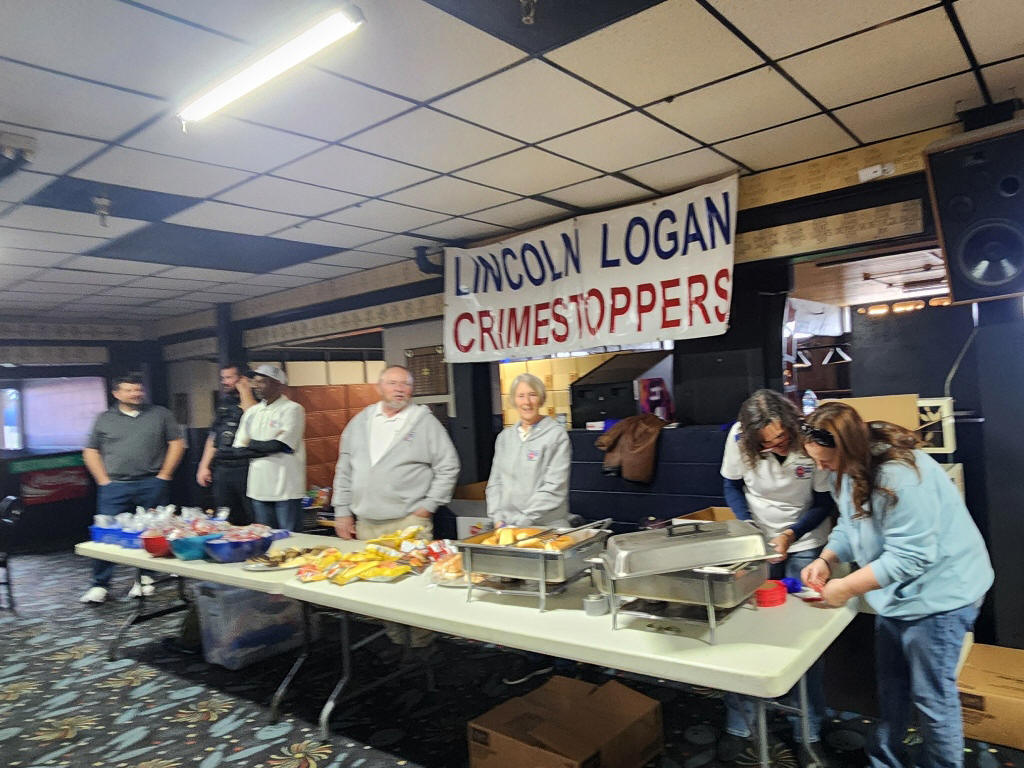 At the far end of the bowling alley, Lincoln Logan Crime Stoppers served