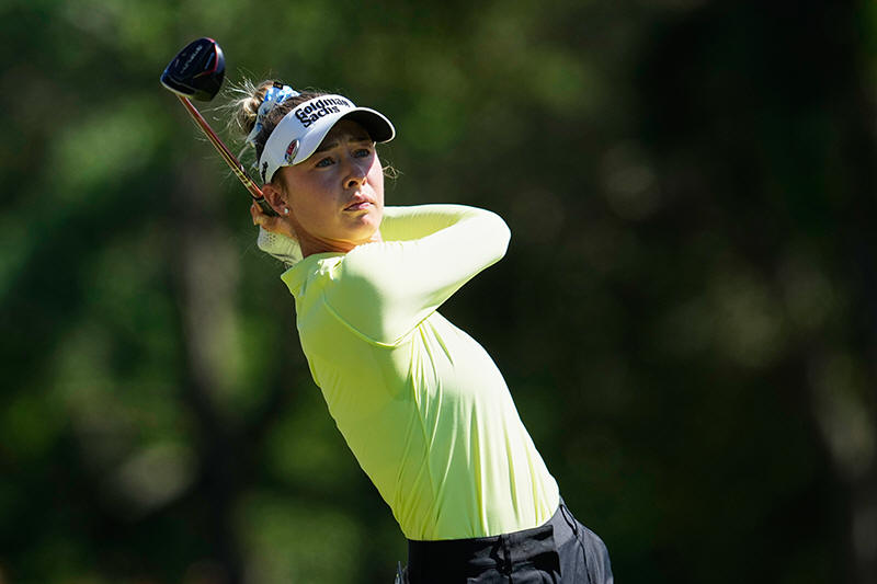 Nelly Korda, of the United States, hits from the third tee during