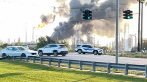 flames billowing out from the refinery. Some residents reported