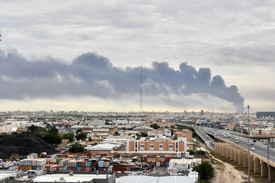 after a drone strike on fuel storage in Kuwait City, Kuwait, Friday,