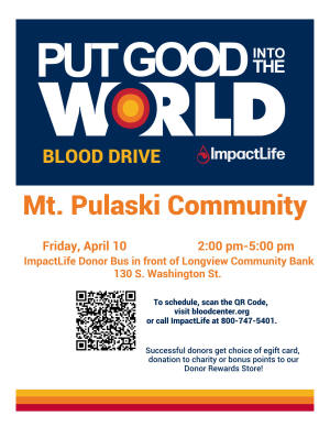 Mt. Pulaski Community to host Community Blood Drive with ImpactLife