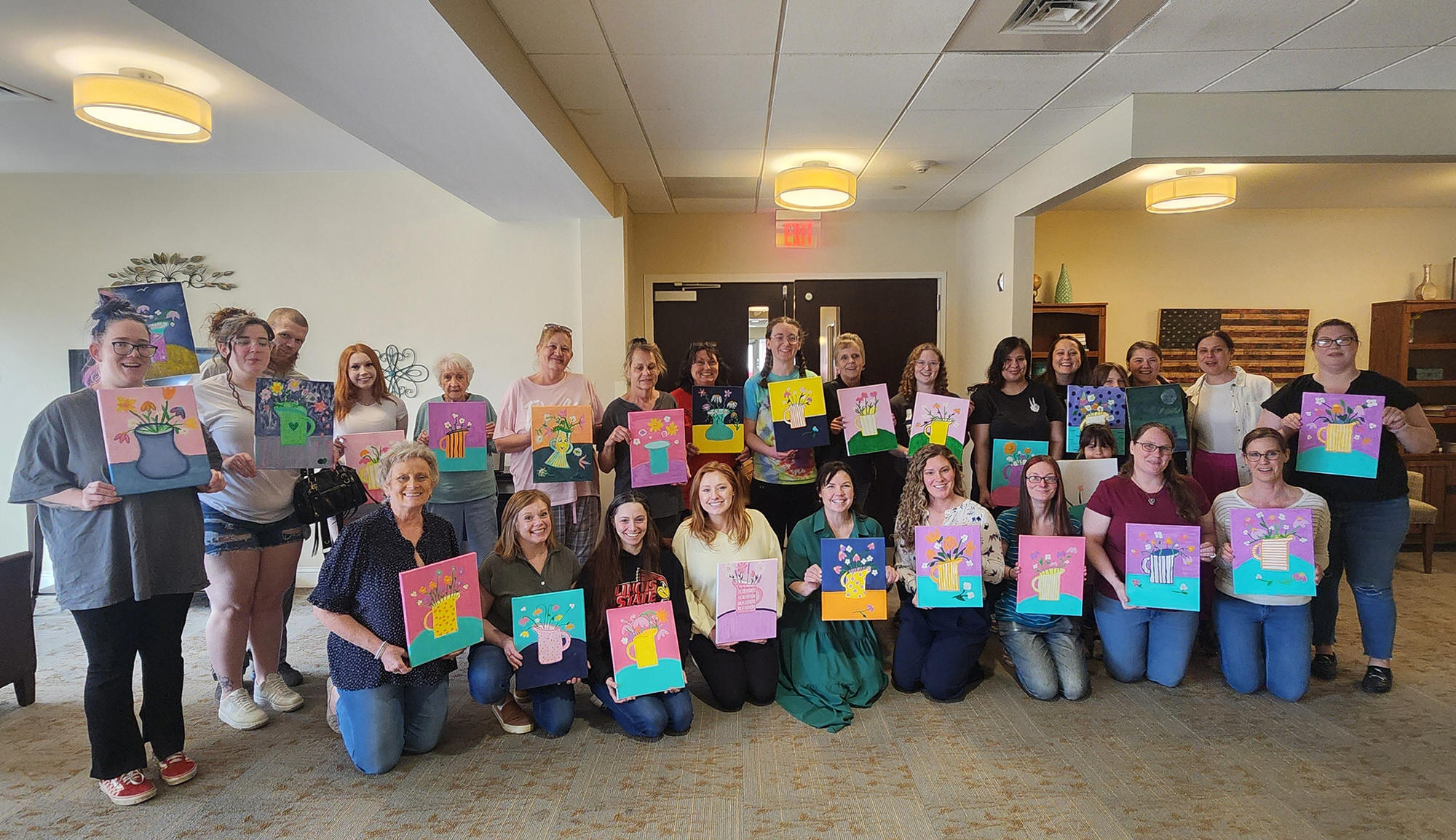 from the community participated in a paint and sip event at Villa