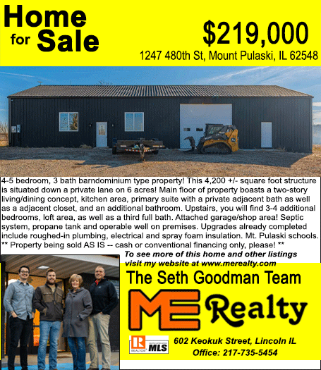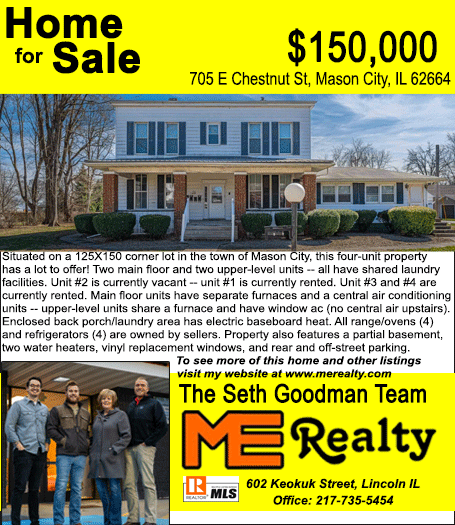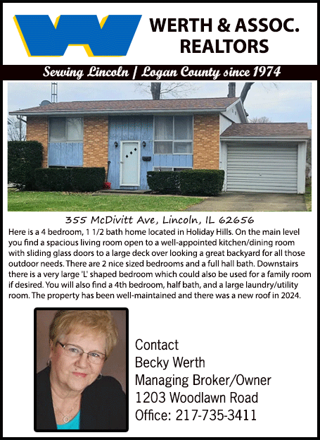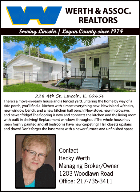All real estate advertised in the Lincoln Daily News is subject to the Fair Housing Act for 1968 which makes it illegal to advertised "any preference, limitation, or discrimination based on race, color, religion, sex or national origin, or intention to make special preference, limitations, or discrimination."