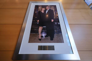 A portrait of Ted and Vada Stanley hangs in the lobby of the Broad