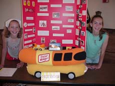stuffed Wiener Mobile alongside displays on Bethel Church, Elkhart