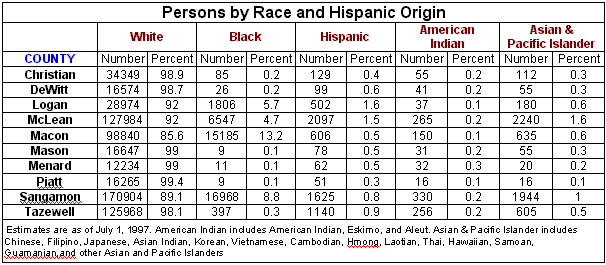 makeup of selected Illinois counties