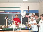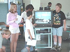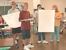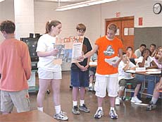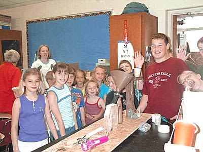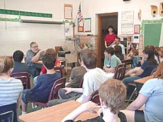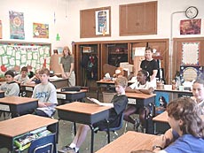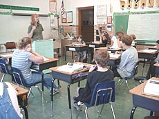 students at Washington-Monroe, with teachers Mary Clark (left) and