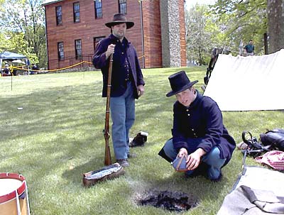 canteen, while Shawn McLane of Monticello holds his 1840 Springfield