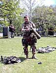 War veteran re-enactor gets some help from a volunteer. Steven 6,