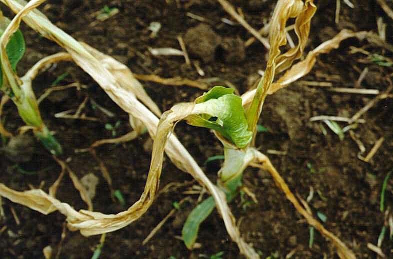 soil surface on corn that had not yet reached the five-leaf stage.