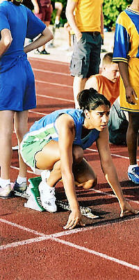 preliminary race in the 100-meter dash, placing second in her heat
