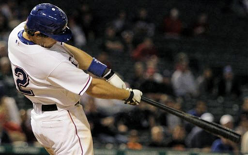 Notes: Baltimore has won the first two games in each of its series this season, only to lose the finale. ... Jones hit a two-run homer in the ninth. ... Josh Hamilton had only two strikeouts in his 31 at-bats before Wednesday, but struck out twice. ... Rangers RHP Willie Eyre, who missed last season while recover from ligament transplant surgery in his elbow, made his season debut with two scoreless innings. ... Benson signed a minor league deal with Texas a week into spring training and made the team.