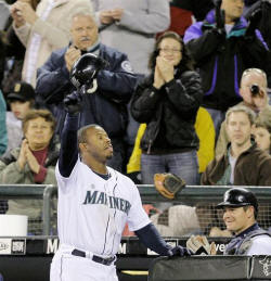 Griffey was believed to be the first major leaguer to wear 42 to honor Robinson in a game, 12 years ago with the Mariners. He just went up to the Mariners' equipment man weeks before the game and said he wanted to do it -- he didn't think to ask for the league's permission because no one had done it.