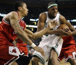 Boston tied it 91-all after another block by Perkins sent Rondo off on a fast break, and he found Pierce for the layup with 66 seconds left in regulation. The point guards traded mistakes, then Gordon hit a leaner from the right side to give the Bulls the lead with 16 seconds left.