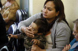 Patients on Wednesday were screened in clinic waiting rooms and the ill were isolated in a separate exam room. Yancy Cabrera brought her 5-month-old son, worried that his night coughing could indicate swine flu.