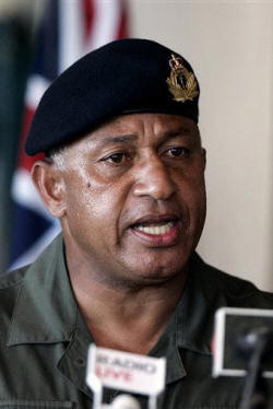 "We want this calm to continue for a while," Bainimarama said. "It's irresponsible reporting that undermines" calm. Bainimarama said within two weeks he would announce a five-year timetable for reforms leading to the 2014 elections. "We have to get rid of racism in the country in the next five years," he said, referring to the long-standing conflicts between indigenous Fijians and ethnic Indians. Bainimarama is an indigenous Fijian. He also called for Australia and New Zealand to be expelled from the Pacific Islands Forum, saying the were putting undue "pressure on the Pacific Islands and that's not how we operate." McCully said Thursday that foreign aid to the impoverished country had already slowed, and the European Union had frozen hundreds of millions of dollars in funding to help restructure Fiji's sugar industry, a key export income earner for the severely weakened economy.