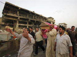 The Wednesday attack in the Baghdad neighborhood of Shula was the first major car-bombing in the capital since May 6, when 15 people were killed at a produce market in south Baghdad. The Shula blast was the deadliest in the city since twin car blasts killed 51 people in another Shiite neighborhood, Sadr City, on April 29. The failure to stop the bombings adds pressure on the Iraqi government to demonstrate that it can meet security challenges ahead of a June 30 deadline for the U.S. to remove all combat forces from Baghdad and other Iraqi cities. A day after the Shula bombing, dozens were still being treated at an area hospital for shrapnel wounds and burns. The blast blew out the front of a building housing shops and restaurants. Coffins draped with flags were carried through the streets near the bombing as funerals began for the dead. U.S. troops are due to leave Iraqi cities under terms of the U.S.-Iraq security agreement which took effect Jan. 1. President Barack Obama plans to remove combat troops from the country by September 2010 with all U.S. forces out of Iraq by the end of 2011. Under the agreement, Prime Minister Nouri al-Maliki could ask the U.S. to delay the cities pullout. However, the issue is politically sensitive in a country worn out by six years of war, and the government has insisted there will be no delay in the withdrawal schedule.