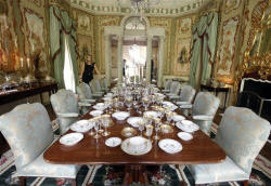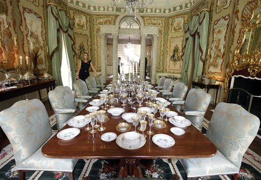 opportunity to see the items in their natural setting. "To see a piece in a house gives it soul," Sally said. The Upperville couple examined a Renaissance-figure chess set and furniture in the library lined with shelves of leather-bound book collections, the pages of their hefty catalog marked with yellow sticky notes noting items of interest. Among Albemarle House's showpieces is a nearly 200-year-old Qing Dynasty gilt-brass and enamel table clock valued between $600,000 and $1 million. Adorned with Chinese characters representing prosperity, the clock still keeps time. A set of six Holland & Holland shotguns is valued between $330,000 and $500,000. Each is engraved with a different wildfowl scene, and the mahogany gun cabinet contains accessories and tools, as well as a folio of the engraving artist's original designs. On display in Kluge's master bedroom is a George III mahogany bed made in the late 1700s, valued at as much as $50,000. It originally came from Hedingham Castle in Essex, England, and was commissioned for Elizabeth Ashhurst. Also featured are several pieces from the collection of the late Virginia-born socialite and designer Nancy Lancaster, who pioneered the grand English country look in the early 20th century. Among the pieces are a pair of nearly 6-foot-tall George III giltwood palm-branch candle-arm wall lights valued at $50,000 to $70,000. Sotheby's sold about $5 million of Kluge's jewelry in April, but additional pieces are up for auction as well as several designer gowns. Kluge said there are things she won't part with, including her son's nursery set, the furniture from his teenage years and other personal items she wants him to have when he marries. As for herself, she aims for "a new look and style that is more modern and chic rather than magnificent." ___ Online: The Collection of Patricia Kluge & Albemarle House: http://www.sothebys.com/minisite/kluge/
