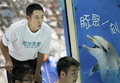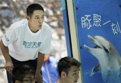The actor promoted the movie by visiting the dolphins at Hong Kong's Ocean Park with a small group of mentally handicapped and autistic adults.