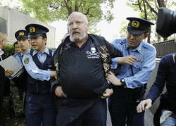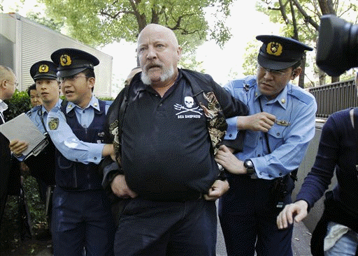 In his court appearances last month, Bethune said he will likely no longer continue his anti-whaling protests. The Sea Shepherd group has been protesting Japan's government-backed research whaling program for years, often engaging in scuffles with Japanese whalers. Japan joins Norway and Iceland in hunting whales under exceptions to a 1986 moratorium by the International Whaling Commission. Japan says its hunts for scientific research and is legitimate under IWC, but opponents call it a cover for commercial whaling. Japan's whaling program also involves large-scale expeditions down to the Antarctic, while other whaling countries mostly stay along their coasts. Sea Shepherd leader Paul Watson said in a statement Wednesday that his group will continue to support Bethune through his court battle in Japan. He denied Japanese prosecutors' allegations that he had ordered Bethune to climb onto the Japanese whaling vessel. About 30 Japanese rightists staged a rally outside the court, shouting through a loudspeaker, denouncing Bethune and Sea Shepherd. They confronted Garry Thomason, Bethune's fellow activist, prompting Japanese police to pull him away for protection. Nobody was injured or arrested.