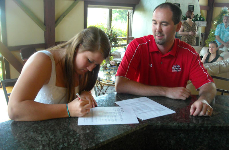 Ind., meets with LCU volleyball coach Jason Farr to sign
