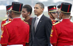 And President Susilo Bambang Yudhoyono seemed as eager as Obama to evoke the U.S. president's childhood here, and take note of the alterations the years have made. "Your excellency must have felt the difference in Jakarta when you arrived this afternoon," Yudhoyono told Obama at the state dinner, as the president looked on with a smile. "You didn't see any paddy fields in the middle of the city, or see fields where you might have played soccer and flown kites in the past," Yudhoyono said. "You didn't see pets like monkeys and infant crocodiles like your excellency might once have had in your home in Jakarta." Yudhoyono also extolled Obama's mother, who died in 1995, and he presented Obama with a medal on her behalf. Though he lives halfway around the world now, the president sought to assure Indonesians that he wanted to keep the country of his youth close to him and his family. It was first lady Michelle Obama's first trip here, and the president said he would like to return one day with daughters Sasha and Malia. Said the president: "I promise that it won't take so long before I come back."