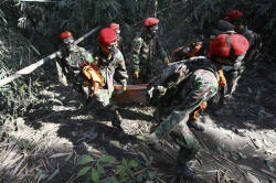Merapi was still issuing explosive roars as it shot clouds of gas and debris up to 3,000 feet (1 kilometer) in the air as ash and pyroclastic flows poured down its slopes. Indonesia, a vast archipelago of 235 million people, is prone to earthquakes and volcanoes because it sits along the Pacific "Ring of Fire," a horseshoe-shaped string of faults that lines the Pacific Ocean.