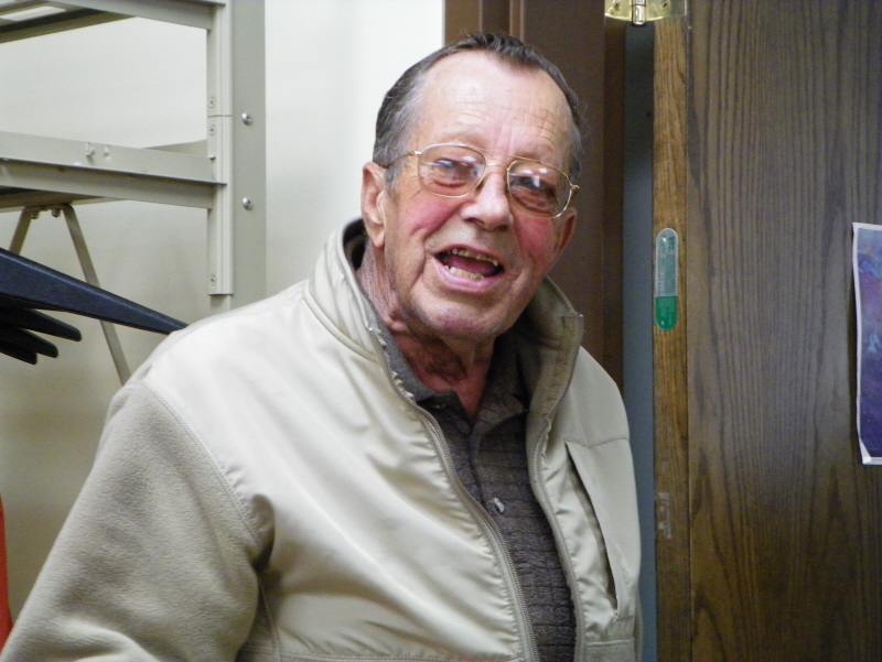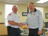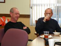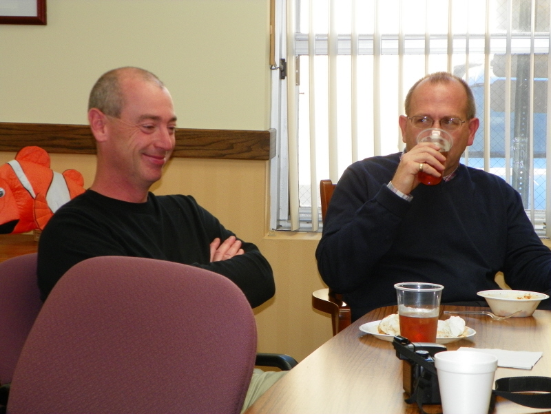 Zoning officer John Lebegue chats with Bill Vinyard.