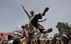Yemen's unrest began as a peaceful protest movement that the government at times used brutal force to suppress, killing at least 166 people, according to Human Rights Watch. It transformed in the past two weeks into armed conflict after the president's forces attacked the home of a key tribal leader and one-time ally who threw his support behind the uprising. The fighting turned the streets of the capital into a war zone. Other forces aligned against Saleh at the same time. There were high-level defections within his military, and Islamist fighters took over at least one town in the south in the past two weeks. In Taiz, Yemen's second-largest city, dozens of gunmen attacked the presidential palace on Sunday, killing four soldiers in an attempt to storm the compound, according to military officials and witnesses. They said one of the attackers was also killed in the violence. The attackers belong to a group set up recently to avenge the killing of anti-regime protesters at the hands of Saleh's security forces. Elsewhere in the south, gunman ambushed a military convoy, killing nine soldiers, officials said. They spoke on condition of anonymity because they were not authorized to talk to the media.