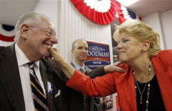 Carolyn Goodman dominated in the April primary against 17 rivals, and polls predicted she would succeed on Election Day, as well. In contrast, it was always an underdog fight for Giunchigliani, who squeaked through the primary with a mere 15-vote advantage over the third-place finisher. At times, the contest resembled a student government election between the girlfriend of the star quarterback and a nice but not as popular teenager. Giunchigliani lit up while discussing potholes, speed bumps, dog parks, sustainable growth, sidewalks and parking meters. Carolyn Goodman stuck to endearing stories about her man and promises to make next year better than ever while offering few specifics. In stump speeches, she traced the couple's history from forbidden lovers (her parents begged her not to marry him) to Las Vegas grandparents. The mayor and his wife went so far as to turn their 49th wedding anniversary celebration Monday night into a campaign event. Both women promised to heal Las Vegas' wounded economy. But the issues often were overshadowed by dragged out catfights. Giunchigliani complained the mayor and his wife operated in arrogance, while the first lady branded Giunchigliani a tainted politician. From her husband's Rolodex, Carolyn Goodman built a $1.44 million campaign chest and spent nearly $600,000 to advertise a name well known to Las Vegans. She splashed her face across billboards, TV spots and poker chips. Giunchigliani raised $1.19 million and leaned heavily on union supporters and the city's often overlooked minority communities, but it wasn't enough. Oscar Goodman, ever the performing ham, wants to continue as a tourism ambassador for Las Vegas after he hands his wife the mayor's gavel next month.