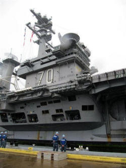 Several Navy wives including Crow said they were so proud of their husbands, but the bin Laden burial also had them shaken, fearing the ship would be a possible target for terrorists. "When I first heard about it, I was pretty scared because terrorists are known for retaliation," she said. "A lot of families were worried." The massive carrier, almost 11 football fields long with a flight deck spanning 4.5 acres, and its 5,500 sailors, pilots and crew were returning home from their deployment to the Middle East and Asia that began Nov. 30. It also conducted exercises with South Korea, Japan, Singapore, Britain, France and Australia in addition to responding to two piracy attempts on civilian vessels. The carrier hosted numerous visitors, from Philippines President Philippines Benigno Aquino III to the Super Bowl champion Green Bay Packers. The ship is expected to leave Pearl Harbor on Friday. It typically takes three days to sail to San Diego from Hawaii, but the Navy hasn't disclosed details of the arrival. There is expected to be a larger greeting when it returns to its home port in San Diego. The USS Carl Vinson is named after the Georgia congressman who died in 1981. ___ Online: USS Carl Vinson:
