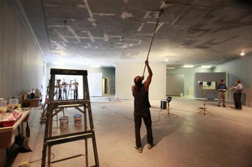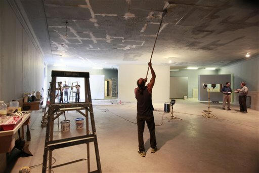 Al Hughes paints the ceiling at Kunsthalle Detroit Museum of