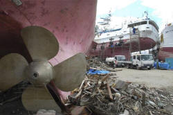 After lengthy negotiations with Penta-Ocean Construction and insurance companies, the parties came up with a deal costing just under 500 million yen ($6 million) to move the Akane Maru and four other ships in a cluster about a quarter-mile (400 meters) from the port, Ikeda said. "We've barely made progress getting back on our feet the past three months. It really seems slow," he said, gazing out at the largely empty harbor, where huge cylindrical tanks remain toppled over and warehouses are in shreds. "We really don't want people to forget about what's happening in Kesennuma." The town has a deep harbor protected by a large island that absorbed the initial onslaught of the wave. When the tsunami struck the town on March 11, it poured over its seawalls and wharfs as rapidly rising water. The surge swept ships into the town, past warehouses and shops, and later the water flowed swiftly back out to sea with debris and parts of houses in tow as black smoke billowed from fires that erupted around town. The tsunami left 1,433 dead and missing in Kesennuma. Three months after the disaster, much of the neighborhood around the port remains destroyed, dotted with piles of debris