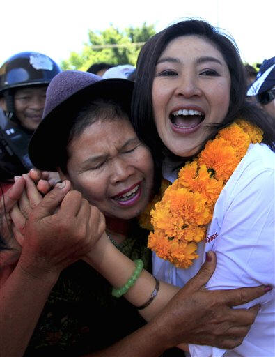 -- if the opposition legally wins but is prevented from governing -- "we will return to Bangkok in greater numbers than before." Although she has never said so, many believe Yingluck plans to introduce a general amnesty to pardon Thaksin, who lives in Dubai to escape serving a prison term at home on corruption convictions he says were politically motivated. Abhisit has condemned that possibility as a way to whitewash the former prime minister's criminal record. Yingluck said there was no fixed plan for an amnesty, and it could only happen "if a majority of people accept it." There "cannot be any special treatment for someone, not even my brother," she said, adding that the country's interests would come before those of her family. "If we have amnesty, everyone will get the same treatment." Yingluck insists she is not her brother's puppet, but one of her party's primary slogans is startlingly clear about who pulls the strings in the organization: "Thaksin Thinks, Pheu Thai Acts." Thaksin has referred to his sister as "my clone." But that only means they are the same "in terms of logical thinking, management style, and the way I act," Yingluck said. "In terms of my opinion, my position, and my leadership, these are my own." The two speak several times a week, Yingluck said. "He just wants to give me support." Yingluck has steered clear of debating Abhisit, a substantive forum the veteran politician would likely use to exploit her political naivety and inexperience. In speeches and interviews, she rarely goes off-message. On a recent trip to northern Thailand, Yingluck, draped in garlands and red roses her campaign staff had earlier handed out to supporters in the front row, froze to pose for pictures. Yet she still appeared natural, at ease among the rural voters who surged forward to hug her and shake her hand