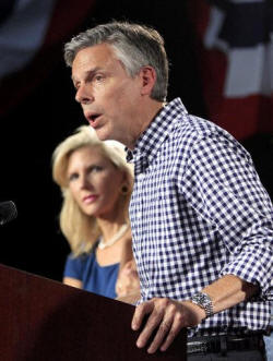 Huntsman said Tuesday there's "no real sign of recovery" in the economy and said the country must "grow out of the hole we're in." He said raising taxes should be "off the table."