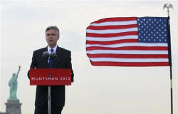 THE CLAIM: "We must make hard decisions that are necessary to avert disaster. If we don't, in less than a decade, every dollar of federal revenue will go to covering the costs of Medicare, Social Security and interest payments on our debt." THE FACTS: Not according to estimates by the government's nonpartisan Congressional Budget Office. The office estimates the government will take in $4.9 trillion in revenue and pay $3 trillion for entitlements and debt interest in 2021. But Huntsman might not be far off. The CBO's revenue forecast is inflated because the office is forced to assume that Bush-era tax cuts will expire as under current law