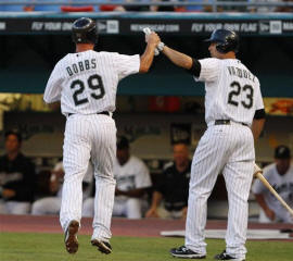 NOTES: U.S. Rep. Howard Coble, R-N.C., planned to place a congratulatory statement in the Congressional Record recognizing McKeon for taking the job at the age of 80. McKeon lives in North Carolina. ... McKeon, fondly remembered for leading the Marlins to the 2003 World Series championship, received a big ovation when he visited the mound in the sixth. ... The Angels' Alberto Callaspo singled in the eighth to end an 0-for-21 slump. ... Santana reached in the second on an infield single, his first hit since 2007.