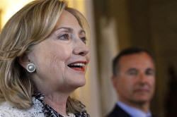 French Foreign Minister Alain Juppe, whose country is at the forefront of the military campaign in Libya, has said the military intervention must end "as rapidly as possible," and warned that sending in international ground troops would set the stage for a "quagmire." And Frattini has said while it was impossible to set a date for an end to NATO's military operation the "political goal is for military action to cease as soon as possible." Frattini urged the U.N. Security Council sanctions committee to figure out how the rebels can request unfreezing of billions of dollars in Libyan assets to be used for humanitarian purposes. The rebels have also called for weapons to be able to defend themselves from Gadhafi's better-equipped forces. Rebel spokesman Abdul Hafid Ghaug, said in Benghazi that no country had sent the arms that the rebel forces say they desperately need. "Up to this point we have not received any commitments (for weapons) from any friendly nation," he said. British officials said the Rome meeting would also seek to impose new restrictions on arms smuggling and mercenaries operating within Libya, call for renewed action to cut off Libya's state television service and try to restrict Gadhafi's exports of crude oil and his ability to import refined oil products. It was the second meeting of the group after a gathering in Doha, Qatar, last month.