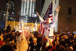 In a follow-up phone interview, Guhr, 44, said she was concerned about scenes of the jubilation inciting retaliatory attacks. "He had a lot of followers, and they're not getting any happier with us," she said of bin Laden. She added that the celebrations made her recall a quote attributed to Gandhi: "An eye for an eye makes the whole world blind." Not surprisingly, the question reached the late-night comedy shows. "I hope I am never again this happy over someone's death," quipped Stephen Colbert on Monday night on "The Colbert Report." His fellow Comedy Central host Jon Stewart mused: "I suppose I should be expressing some ambivalence about the targeted killing of another human being. And yet