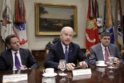But Obama's plan calls for about $1 trillion in higher tax revenues, a nonstarter with House Republicans. At the same time, a GOP plan to slash Medicaid and turn Medicare into a program in which future beneficiaries receive subsidies to purchase private health insurance is dead with the White House and Democrats. Six lawmakers planned to attend: Cantor; Senate GOP Whip Jon Kyl of Arizona; Senate Appropriations Committee Chairman Daniel Inouye, D-Hawaii; Finance Committee Chairman Max Baucus, D-Mont.; and senior House Democrats Jim Clyburn of South Carolina and Chris Van Hollen of Maryland. Some Republicans hope to attach legislation sponsored by Sens. Bob Corker, R-Tenn., and Claire McCaskill, D-Mo., to the so-called debt limit bill. Their proposal would cap spending at about 21 percent of the size of the economy, backed up by automatic spending cuts if Congress is unable to enact legislation that brings spending in under the cap. The White House strongly opposes the idea, saying it would force drastic, across-the-board cuts to Social Security, Medicare and Medicaid while doing nothing to force lawmakers to clean out a tax code laden with tax breaks. "Arbitrary spending caps are nothing but a backdoor means of imposing immediate and deep cuts in Medicare and Social Security," said Kenneth Baer, spokesman for the White House budget office. Cantor wouldn't dismiss the idea, but he said Republicans want something concrete immediately. "All that is fine, but the history of Congress has been that anytime you put enforcement mechanisms in place like that, ultimately they're waived," he said. "We're about trying to effect real cuts, real reforms this year."
