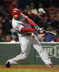NOTES: Red Sox 2B Dustin Pedroia went 0 for 6 with four strikeouts. ... Before the game, Scioscia said, "We're still trying to get different dimensions of our lineup. We're still waiting for Vernon to get going." ... Ellsbury extended his hitting streak to 12 games and Gonzalez stretched his to 11. ... Boston DH David Ortiz fouled a ball off his right foot in the second but stayed in the game and struck out.