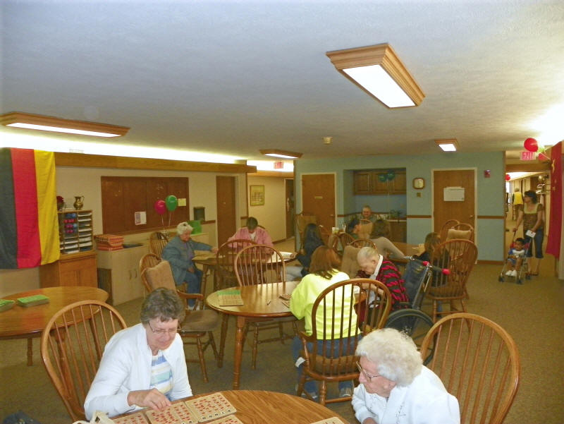 The activity room fills with residents and guests ready to play