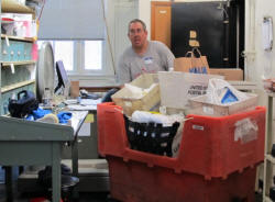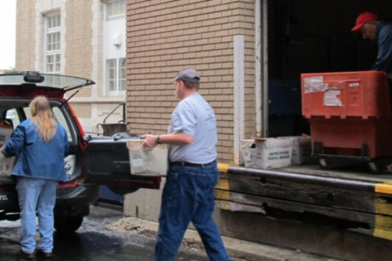 food items from the Lincoln post office dock into vehicles and