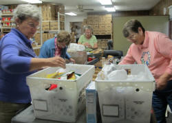 volunteers inside established an assembly line of activity that