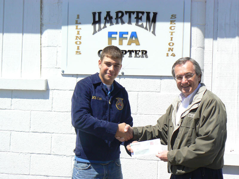grant check to Josiah Klokkenga, Hartsburg-Emden FFA president.