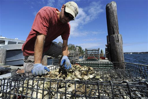 Markow said the oystermen would like to grow more in controlled environments. He and others have asked for state permits for indoor tanks that can serve as an alternative to the river and provide a steady supply of oysters. They're also seeking permission for winter harvesting from the river. "We'd like to hire more people and grow," he said. "It's tough to do that when all you hear is no." David Carey, director of the Connecticut Department of Agriculture's aquaculture division, said it's in the final year of a three-year testing period for fecal matter and other contamination from storm runoff. So far, the prospect of winter harvesting "looks very favorable," but the state has to look at all the data, he said. "We have to go through all the hoops," he said. "If someone gets sick, we're responsible." Along with the request for disaster aid, Rep. Joe Courtney, D-Conn., one of three New England congressmen on the House Agriculture Committee, is pushing federal legislation that would include shellfish among the specialty crops such as fruits, nuts, berries and flowers that qualify for federal marketing help. "The fundamental issue is whether shellfish and aquaculture are going to receive parity with other forms of agriculture," Courtney said. "Hurricane Irene has exposed this disparity." Shellfish growers can apply for federal disaster assistance available for the entire fisheries industry, but Markow said competition among the many segments makes that tough to get. "We're not really considered farmers. We're not really considered fishermen," Markow said recently as he replaced cages and moved oysters to new beds 6 feet below the surface of the Mystic River. "You get caught in between. Aquaculture is still evolving."