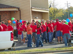 The "sea of red" is three blocks long.